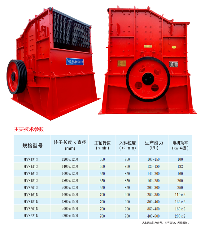 【产品简介】 重锤式移动破碎机是直接将粒度为600毫米以下的物料破碎至50或60毫米以下的一段破碎用破碎机。本机适用于水 泥、化工、电力、冶金等工业部门破碎中等硬度的物料,如石灰石、炉渣、焦炭、煤等物料的中碎细碎作业。